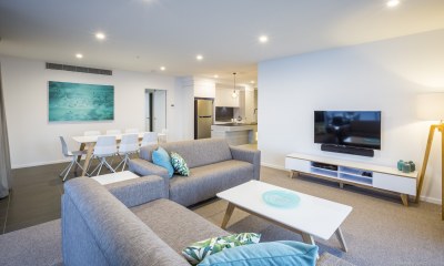 The 3 bedroom apartments sleeps 6 and features 1 fully equipped bathroom and one en-suite in the main bedroom, a full entertainment area including a high definition TV (with Foxtel + FREE WiFi), a Hi-Fi system, a relaxing lounge area, dining table and fully equipped kitchen with the finest European appliances. Please note the bedding configurations for this room type differ between 1 queen & 4 singles, 2 queen & 2 singles and 3 queens.